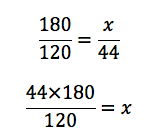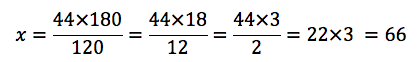 That's an algebraic solution, for those who want one. Notice, even more elegant: 180 is 50% greater than 120, so the cost should be 50% greater than $44. Well, half of $44 is $22, and 44 + 22 = $66. If you see that, that's a very elegant way to think about this.